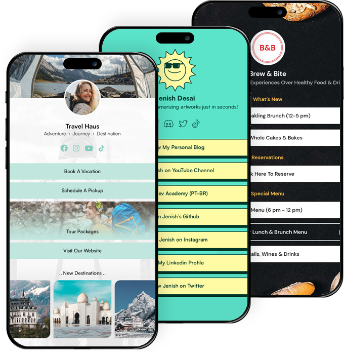 Create a custom link website with all your important links and posts from Instagram and TikTok.